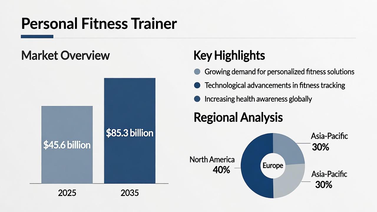The personal fitness trainer market is experiencing transformative growth, with projections showing an increase from USD 45.6 billion in 2025 to USD 85.3 billion by 2035, reflecting a CAGR of 5.3%. Rising health consciousness, increasing disposable income, and the adoption of personalized fitness programs are key drivers shaping the market. The integration of digital platforms, AI-driven coaching, and wearable technology has further redefined how consumers engage with fitness services.