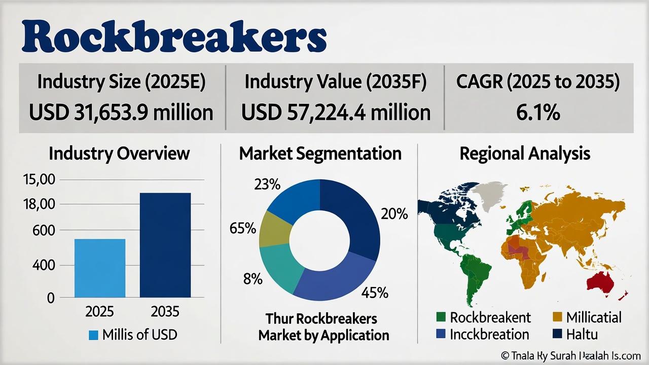 The global rockbreakers market is entering a transformative decade, projected to grow from USD 31.65 billion in 2025 to USD 57.22 billion by 2035, expanding at a CAGR of 6.1%. This growth is being powered by a surge in mining, quarrying, infrastructure development, and demolition activities, combined with the emergence of artificial intelligence (AI), automation, and eco-efficient technologies in rockbreaking machinery.