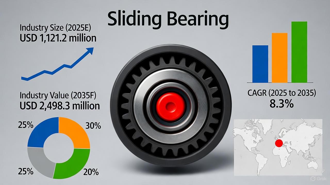 The global sliding bearing market is entering a decade of transformative growth, with projections estimating a rise from USD 1,121.2 million in 2025 to USD 2,498.3 million by 2035. Representing an impressive CAGR of 8.3%, this growth is fueled by expanding industrial machinery, automotive, aerospace, energy, and construction sectors worldwide. Established manufacturers and new entrants alike are leveraging cutting-edge technologies and materials to meet rising demand for high-performance, durable, and energy-efficient sliding bearings.