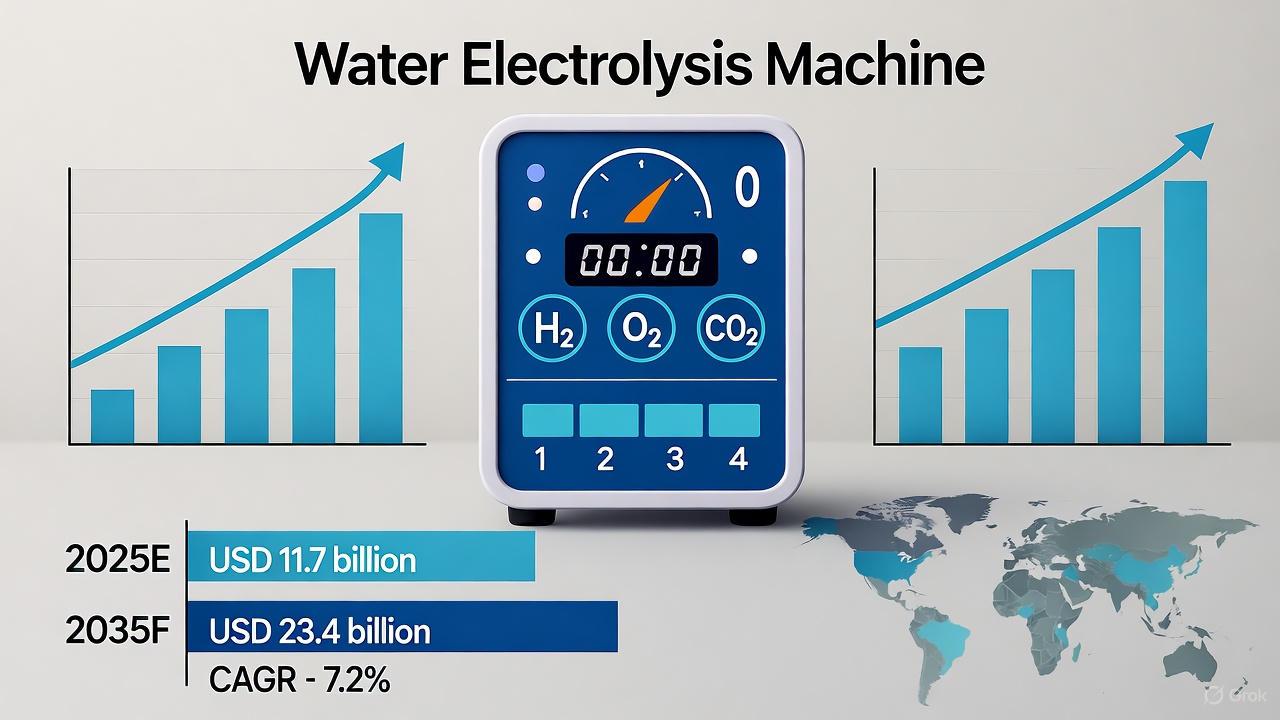 The global Water Electrolysis Machine Market is entering a transformative decade marked by innovation, investment, and industrial expansion. Valued at USD 11.7 billion in 2025, the market is forecast to reach USD 23.4 billion by 2035, growing at a CAGR of 7.2%, according to Future Market Insights. The surge is driven by the global shift toward clean hydrogen production, which is central to achieving carbon neutrality across industries.