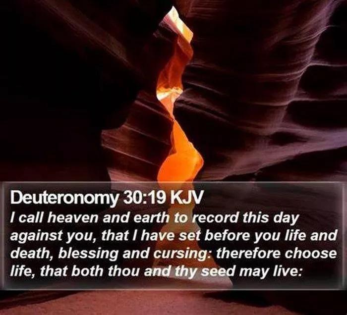 “I call heaven and earth to record this day against you, that I have set before you life and death, blessing and cursing: therefore choose life, that both thou and thy seed may live:” — Deuteronomy 30:19 (KJV)