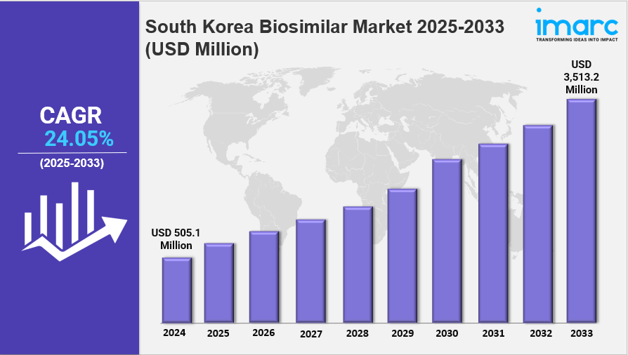 IMARC Group has recently released a new research study titled “South Korea Biosimilar Market Size, Share, Trends and Forecast by Molecule, Indication, Manufacturing Type, and Region, 2025-2033”, offers a detailed analysis of the market drivers, segmentation, growth opportunities, trends and competitive landscape to understand the current and future market scenarios.