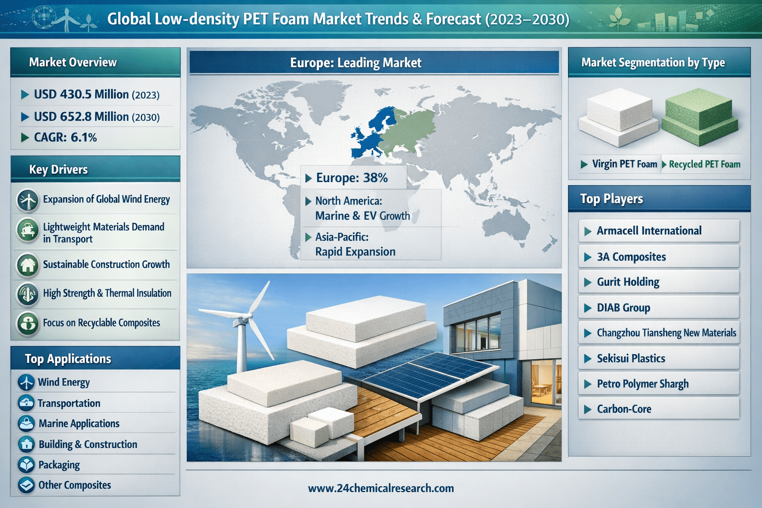 According to 24Chemical Research, Global Low-density PET Foam Market was valued at USD 430.5 million in 2023 and is projected to reach USD 652.8 million by 2030, growing at a CAGR of 6.1% during the forecast period. This expansion reflects increasing demand across wind energy, transportation, and construction sectors where lightweight, high-performance materials are becoming essential.