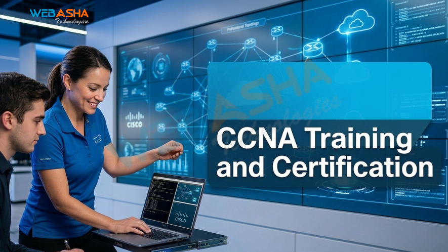The Cisco Certified Network Associate (CCNA) certification provides a strong introduction to networking technologies and helps learners understand how modern networks function. At WebAsha Technologies, the training program is designed to combine theoretical learning with practical exposure so that students can confidently work in real networking environments.