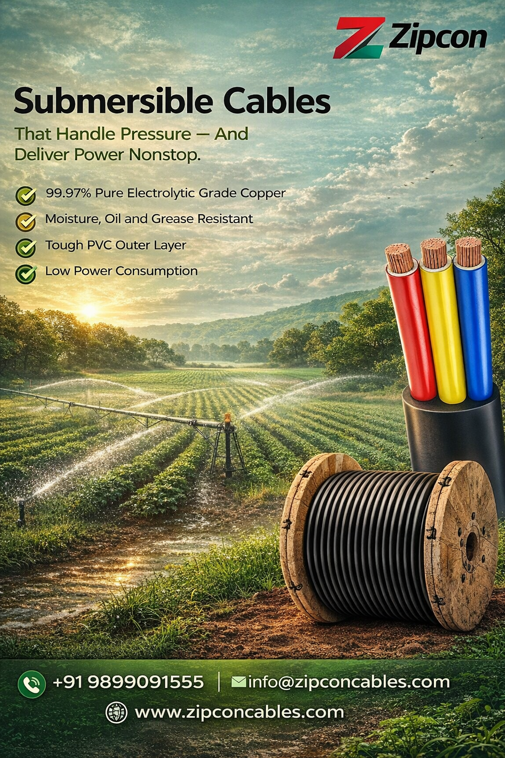 ZIPCON Cables has built a strong presence by focusing on durability and consistent performance. Their cables are designed for conditions commonly seen in Coimbatore, including voltage fluctuations and long pump running hours.