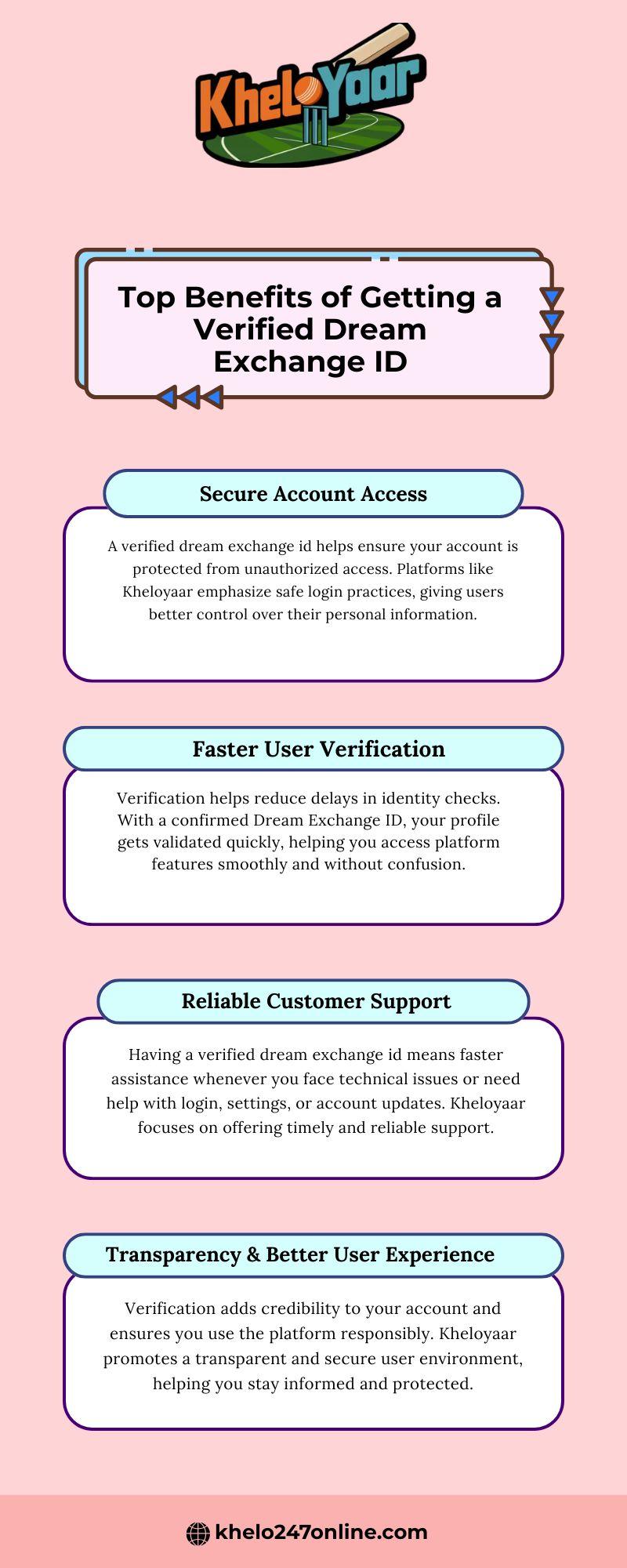 Having a verified dream exchange id means faster assistance whenever you face technical issues or need help with login, settings, or account updates. Kheloyaar focuses on offering timely and reliable support.