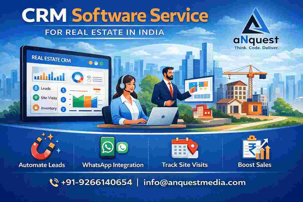 The best CRM Software Service for Real Estate in India to manage property leads, automate follow-ups, and boost sales. Explore smart real estate #CRMsoftware solutions by #aNquestMedia.