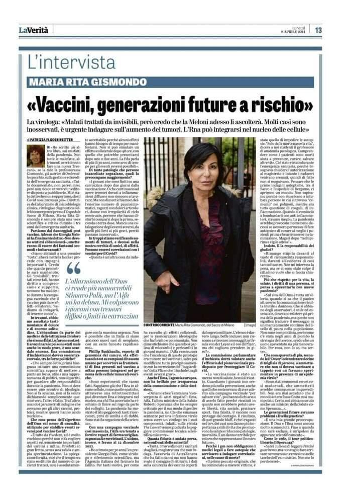 Maria Rita Gismondo avrebbe potuto parlare prima. NON ORA CHE I DANNI DA VACCINO SONO SOTTO GLI OCCHI di TUTTI. Meglio tardi che mai!!! Articolo che fa venire i brividi!!! Testo completo dell'articolo: https://www.scenario.press/posts/14360 #laverita #gismondo #mariaritagismondo