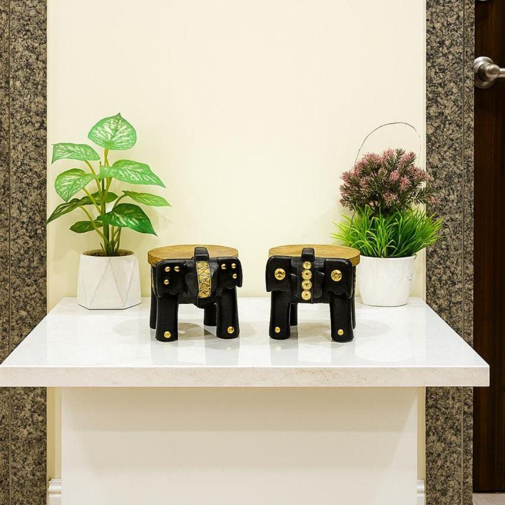 Framing Hub – Handcrafted Emboss Painted Wooden Elephant Stool | Wooden Candle Holder | Colorful Decorative Showpiece Side Table for Home, Office, Living Room or Bedroom Decor (Set of 2).
