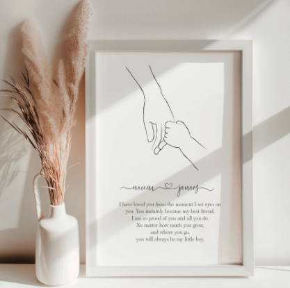 Celebrate the unbreakable bond with our Mother-to-Son Personalised Art Print. Add names, choose framed or unframed, and create a heartfelt keepsake for any occasion. Premium archival print, beautifully crafted, and perfect for UK homes. A meaningful gift he’ll treasure forever. With free UK delivery and despatch within one working day!