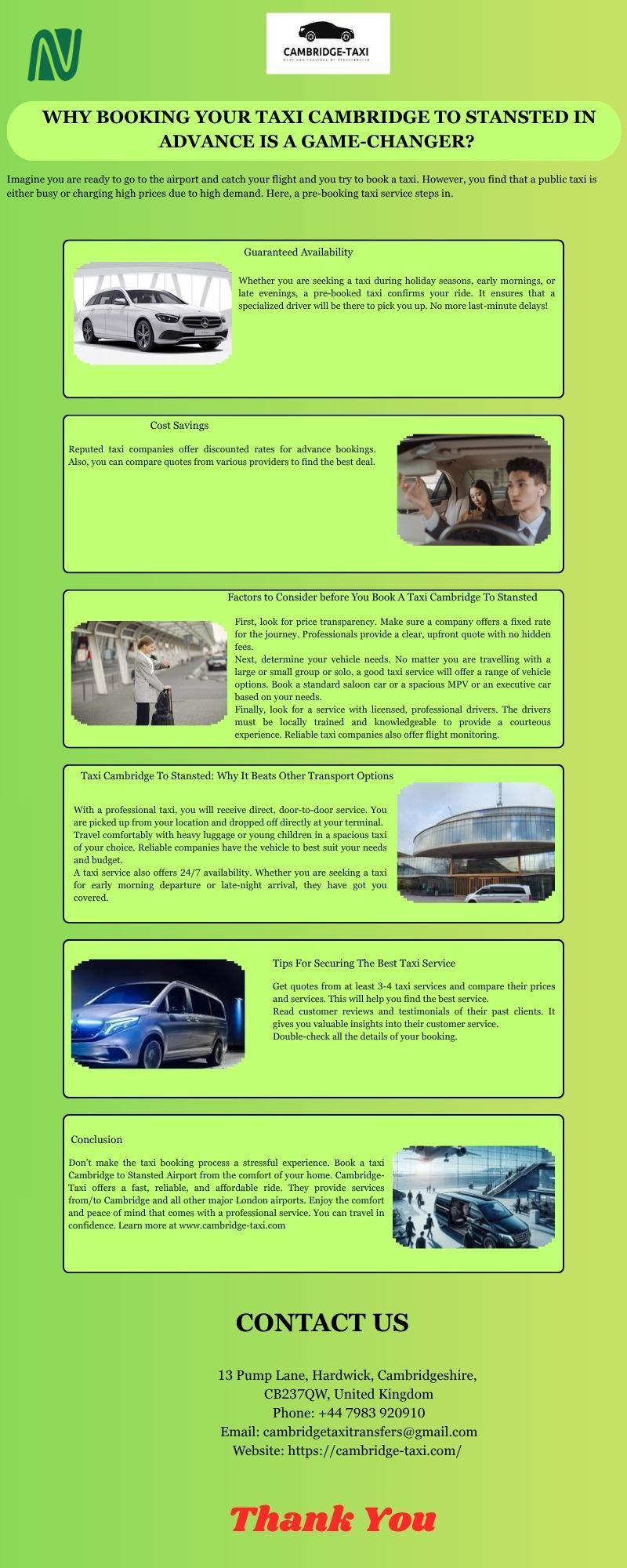 • All our luxury cars at Cambridge-Taxi in Cambridge are licensed and insured. Also, our staff members are trained and licensed to manage safe rides in the city. The vehicles at our reputable taxi service are checked from time to time for their service quality, and our teams meet local authority regulations for all rides or visit https://cambridge-taxi.com/